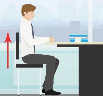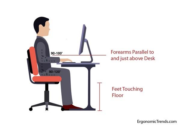 Cách thích hợp để điều chỉnh độ cao của ghế là sao cho cẳng tay của bạn ở cùng độ cao với mặt bàn với khuỷu tay tạo thành góc mở 90-100 độ: