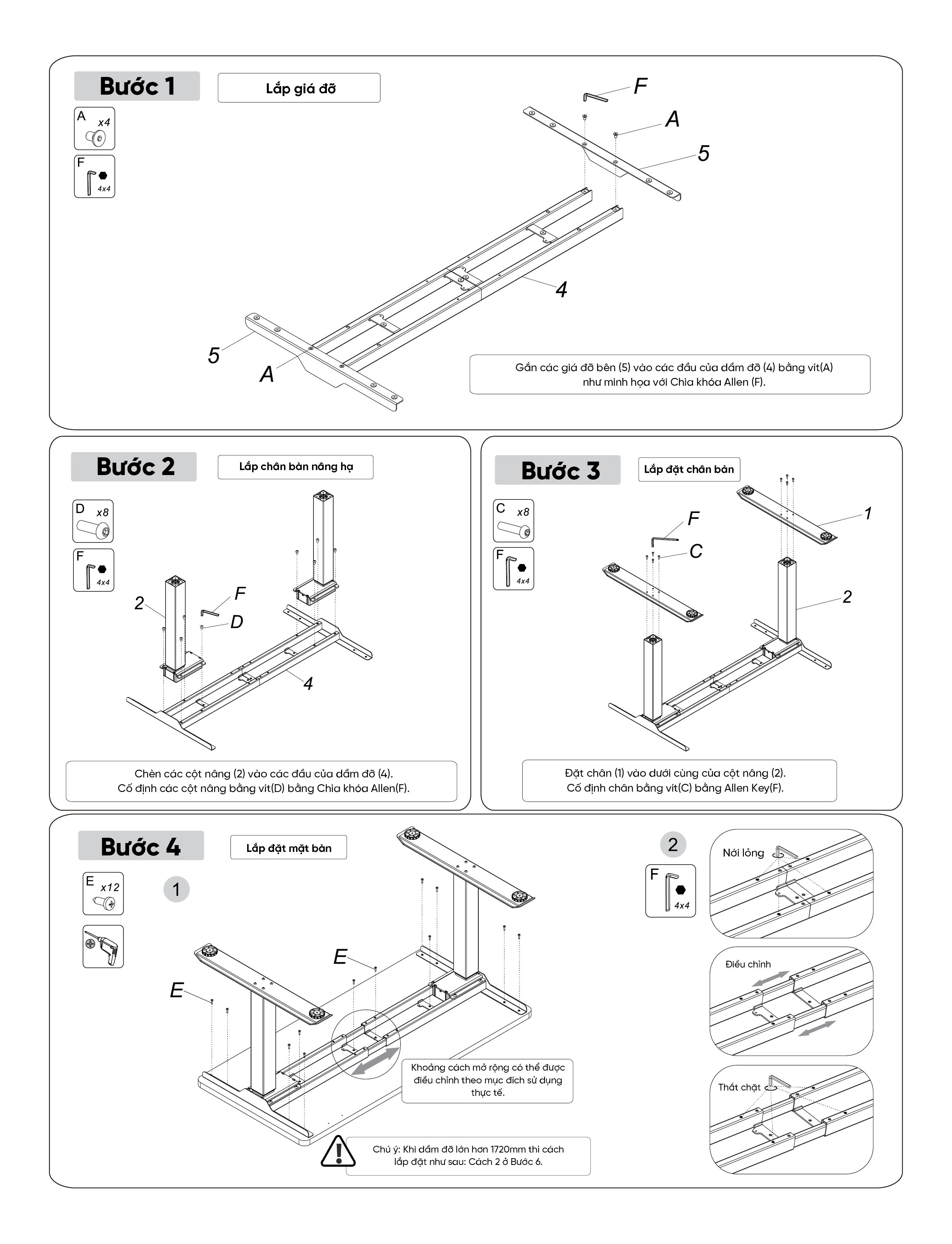 Khung bàn có thể phù hợp và có thể lắp tốt với bất cứ tấm mặt bàn nào. Cho không gian làm việc thêm thoải mái. |