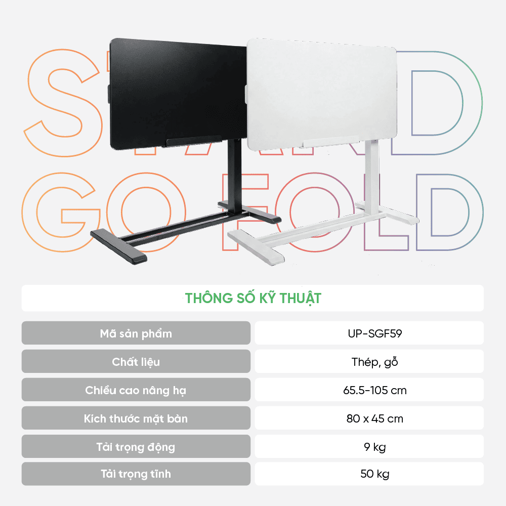 UPGEN STANDGO FOLD là mẫu bàn nâng hạ di động theo tiêu chuẩn công thái học được thiết kế với mục tiêu nâng tầm không gian làm việc hiện đại và linh hoạt. Sản phẩm tập trung vào khả năng tối ưu diện tích, gia tăng sự tiện nghi và cải thiện trải nghiệm sử dụng mỗi ngày. Thiết kế tinh gọn, đường nét hiện đại giúp bàn dễ dàng hòa hợp với nhiều phong cách nội thất khác nhau. Đây là lựa chọn thông minh cho những ai theo đuổi lối sống chủ động và năng động.