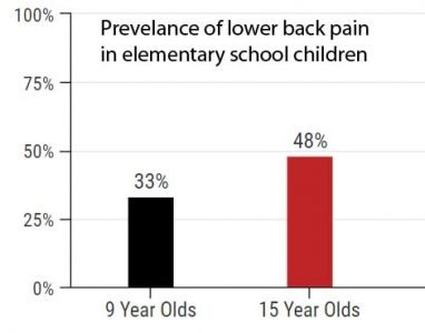 Điển hình: Trong một nghiên cứu trên 600 học sinh tiểu học, tỷ lệ đau lưng dưới ở trẻ em dưới 9 tuổi là 33%. Ở nhóm tuổi 15, con số này tăng lên 48%.