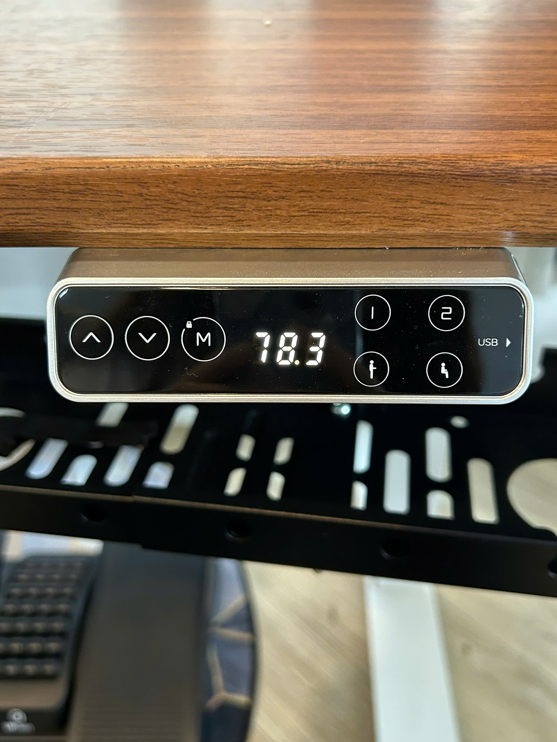Màn hình LED thể hiện chiều cao của bàn khi độ cao thay đổi từ cao xuống thấp hoặc ngược lại.