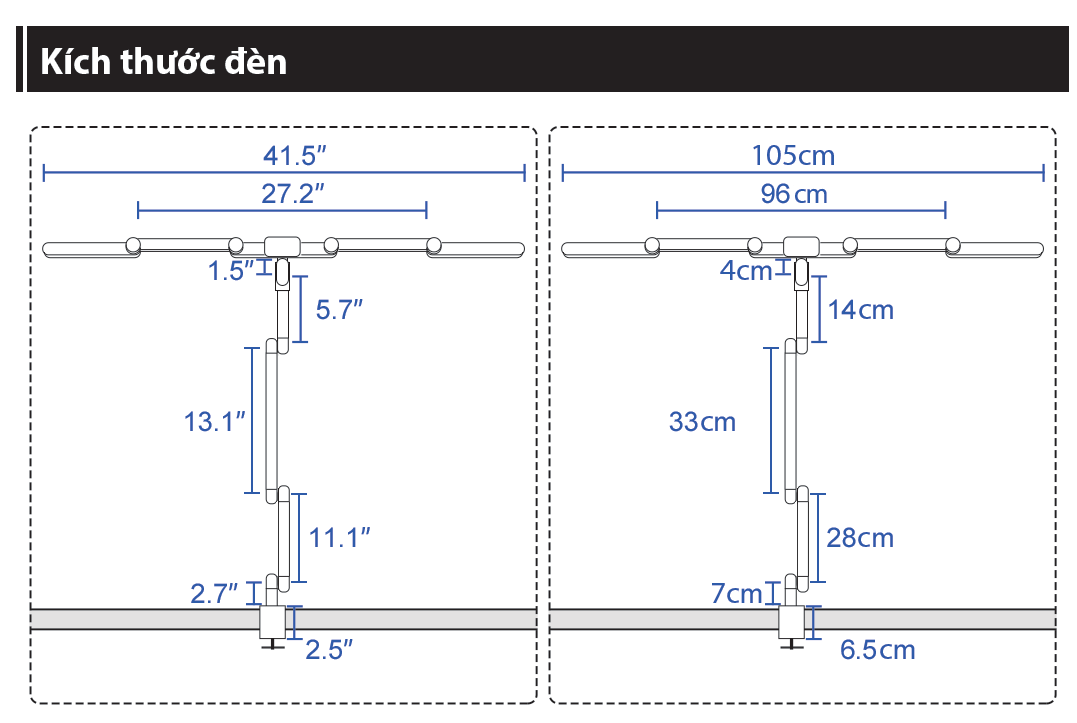 Đèn Scorpio với hai thanh đèn dài 18 cm và khả năng mở rộng lên đến 105 cm tạo nên nguồn ánh sáng mạnh mẽ, đồng đều và không gây chói. Ánh sáng được phân phối đều trên toàn không gian làm việc, giúp bạn làm việc hiệu quả và thoải mái.