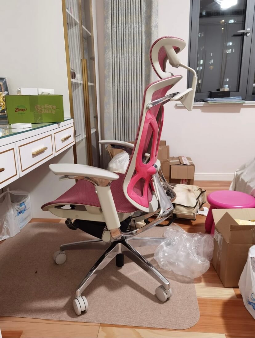 - Thiết kế lưng ghế mô phỏng đường cong tự nhiên của cột sống, hỗ trợ tối đa vùng cổ và thắt lưng.