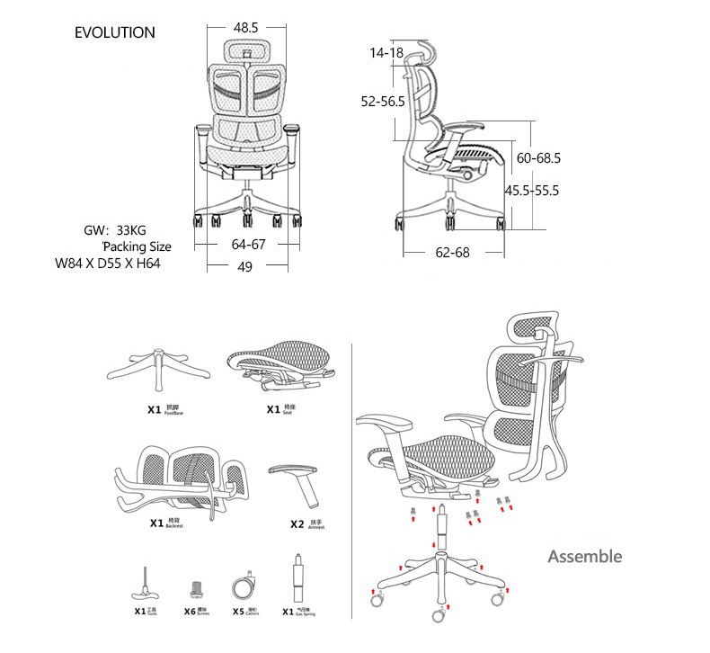 Với xuất phát điểm làm cho thị trường Châu Âu với khung ghế siêu chịu lực, lưới ôm và chịu tải, Evolution sau này được phát triển thêm khổ tiêu chuẩn dành riêng cho thị trường châu Á. Ghế sử dụng lưới Mỹ khung thép cao cấp, lưng ghế phân 3 vùng giúp tối ưu tư thế ngồi làm việc hiệu quả,bảo vệ sức khoẻ người ngồi làm việc, chống đau lưng, mỏi cổ vai gáy. Ghế được phân phối chính hãng và bảo hành 3 năm tại Việt Nam