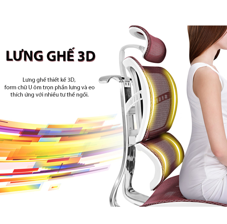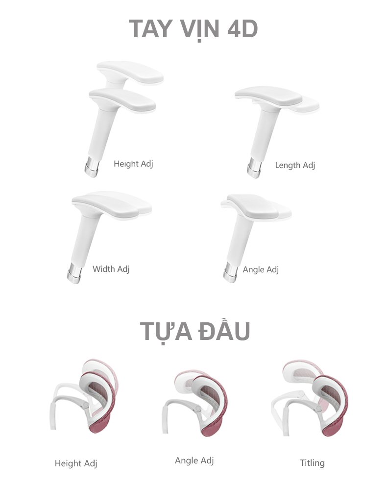 | Lưng ghế | Thiết kế 3D. Nâng/hạ 5 cm | Tay vịn | 4D | ||