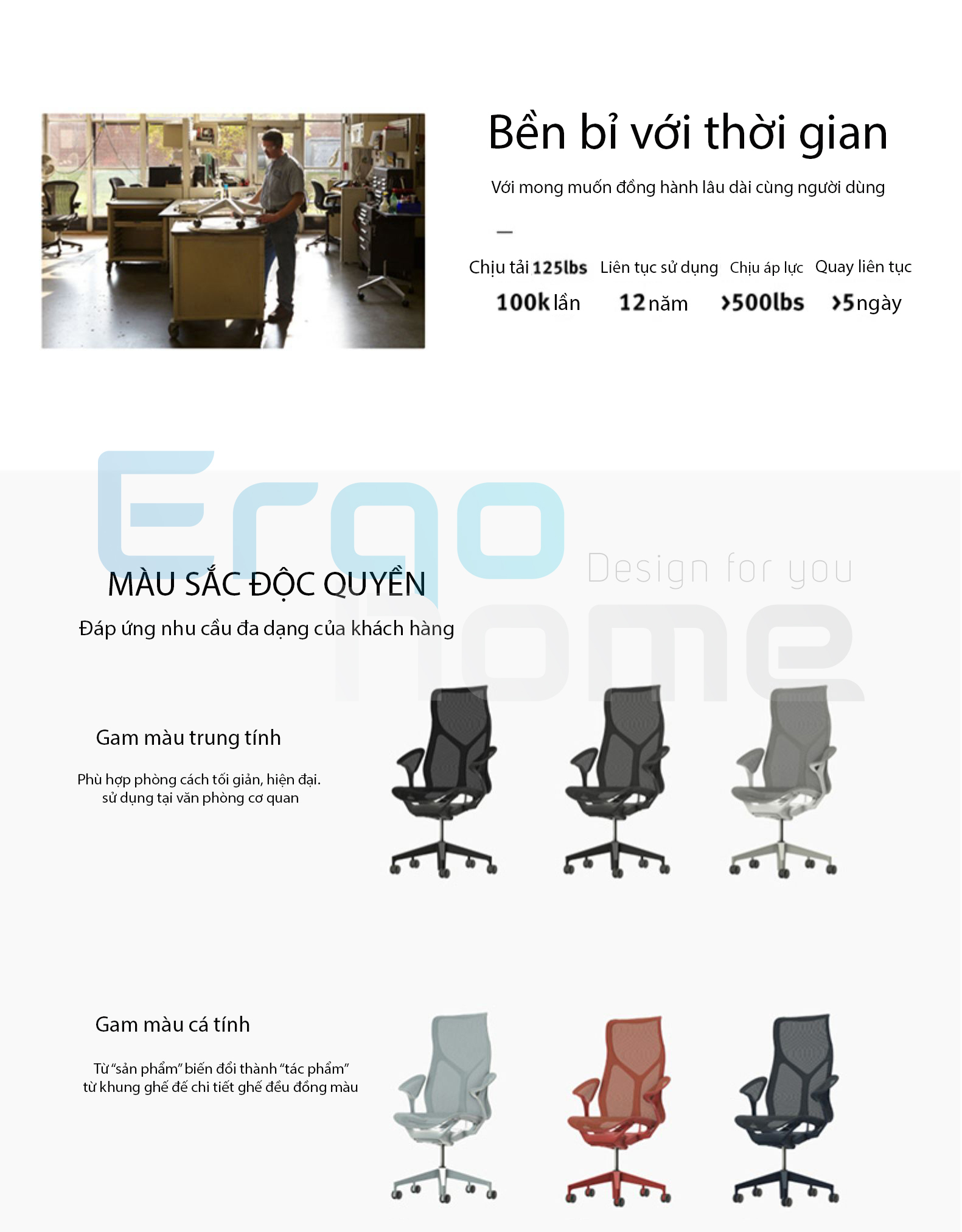 🔰 Ghế Herman Miller Aeron Cosm được Ergohome bảo hành lên tới 12 năm theo chính sách từ nhà sản xuất và hỗ trợ trọn đời.