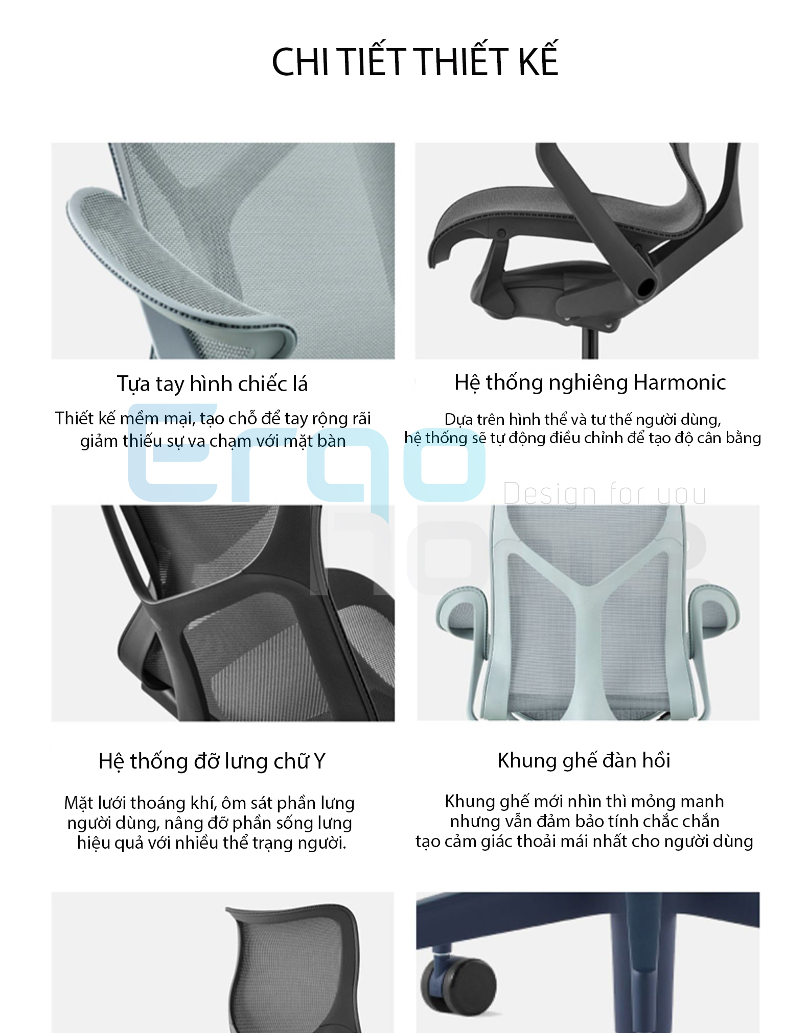 | Ngả lưng | Cơ chế Harmonic Tilt | Tay Vịn | Leaf Arm công thái học | ||