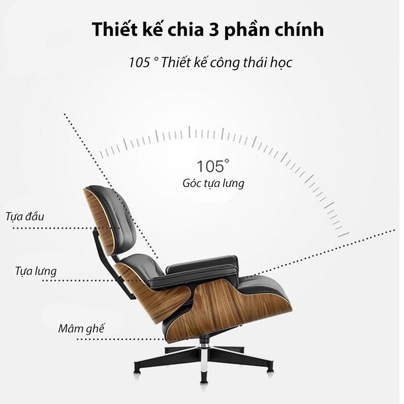 Ghế thư giãn cao cấp Eames Lounge Chair & Ottoman được coi là tác phẩm nổi bật nhất của thế kỉ XX, là biểu tượng của sự thành công, quyền lực. Eames Lounge Chair & Ottoman được thiết kế bởi vợ chồng nhà thiết kế tài ba Charles Eames, Ray.