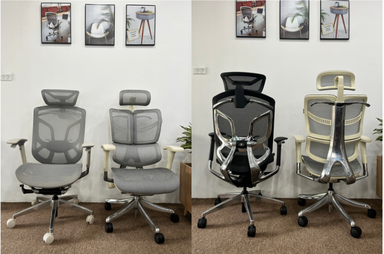 (hình ảnh chụp trước và sau 2 ghế, bên trái là Butterfly, bên phải là Evolution)
