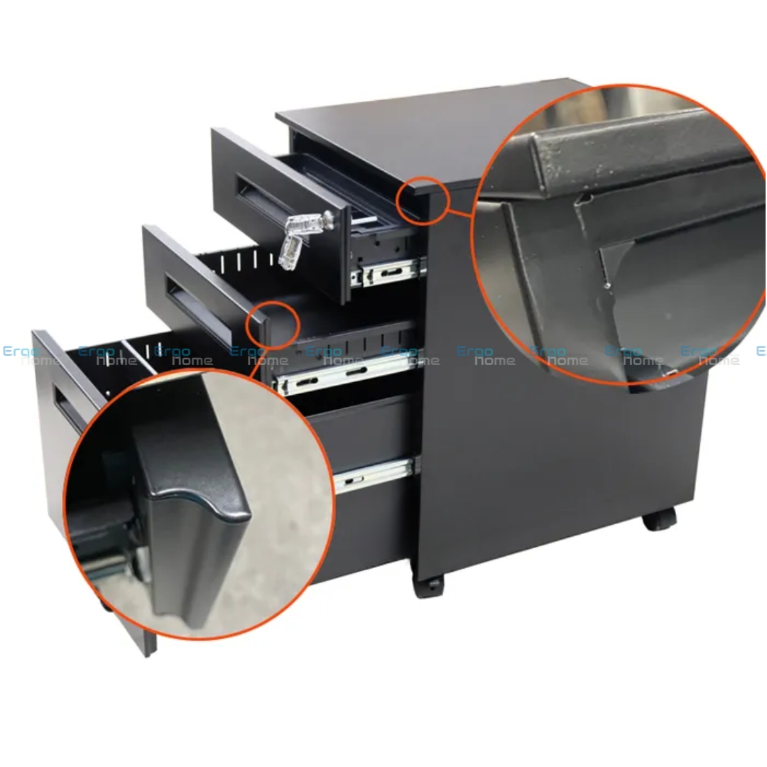 Thiết kế phù hợp với các loại bàn nâng hạ ở ErgoLife nên có thể chèn tủ lên chân bàn tiết kiệm không gian.