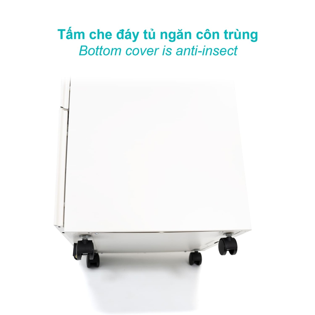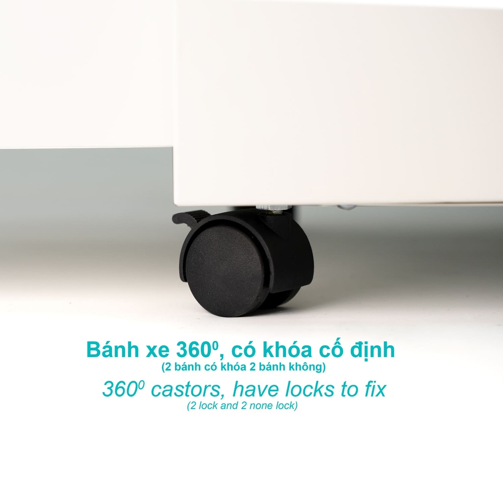 Việc kết hợp bánh xe chịu lực ở ngăn tủ lớn đem lại sự bền bỉ cho dù bạn có các đồ nặng bên trong.