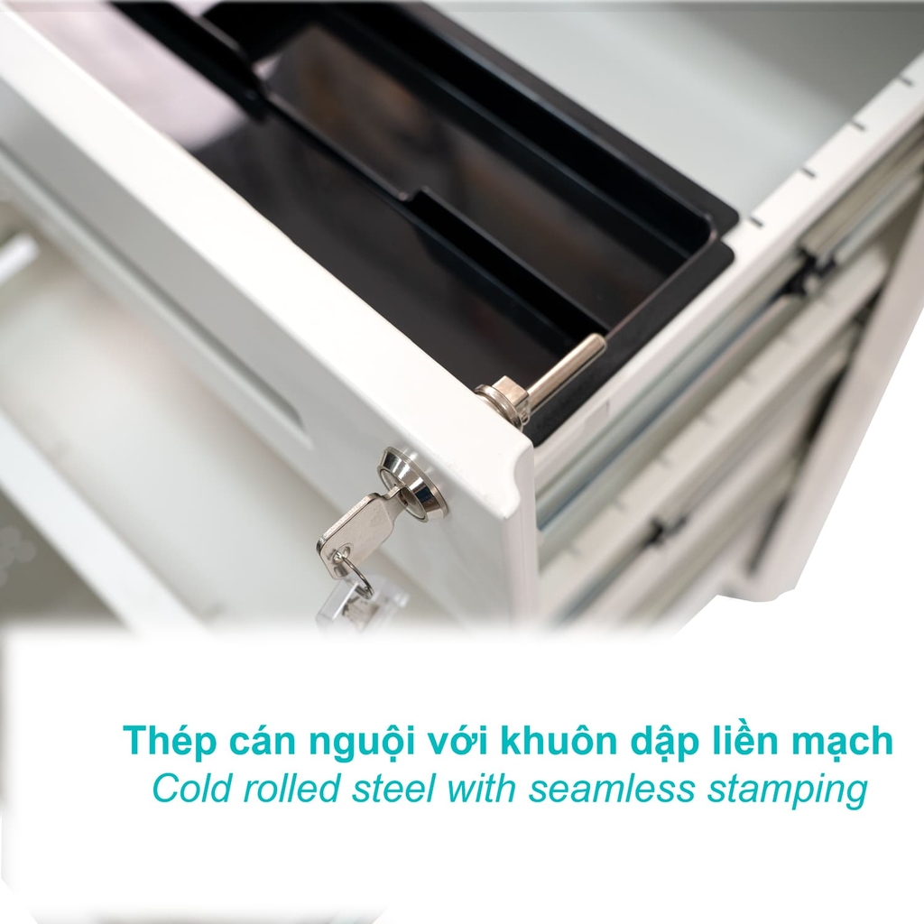 Tủ được gia cường chịu lực các góc và thép cuốn ở các cạnh hộc đem lại khả năng chịu lực tốt ở mọi vị trí.
